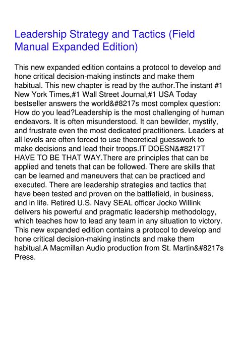 Download Leadership Strategy and Tactics: Field Manual Audio CD Open Library